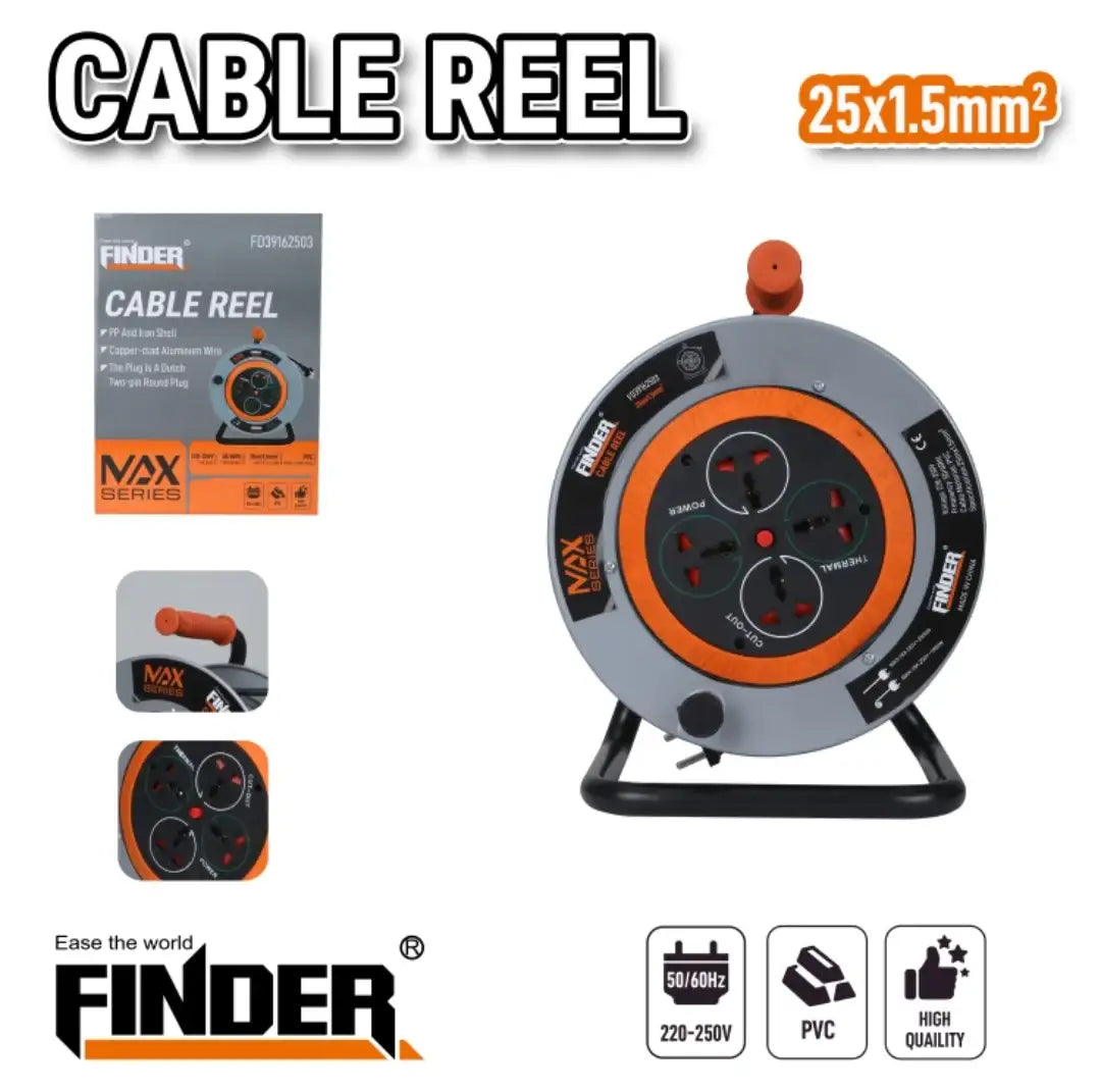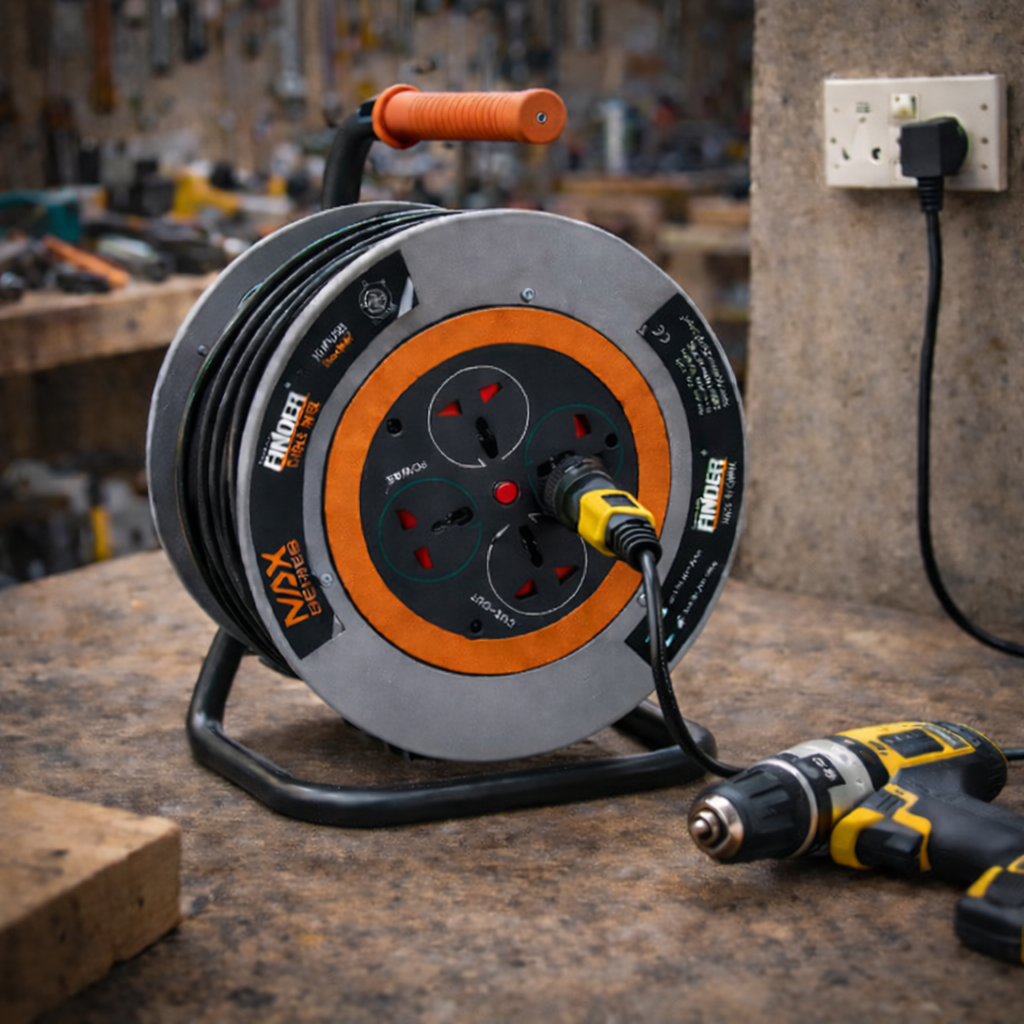 بكرة تمديد كهرباء من Finder – سلسلة NAX، مصممة لتوفير أداء آمن وفعّال للاستخدام المنزلي أو المهني.