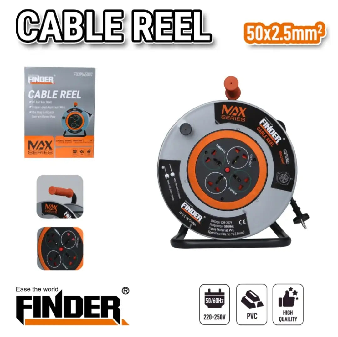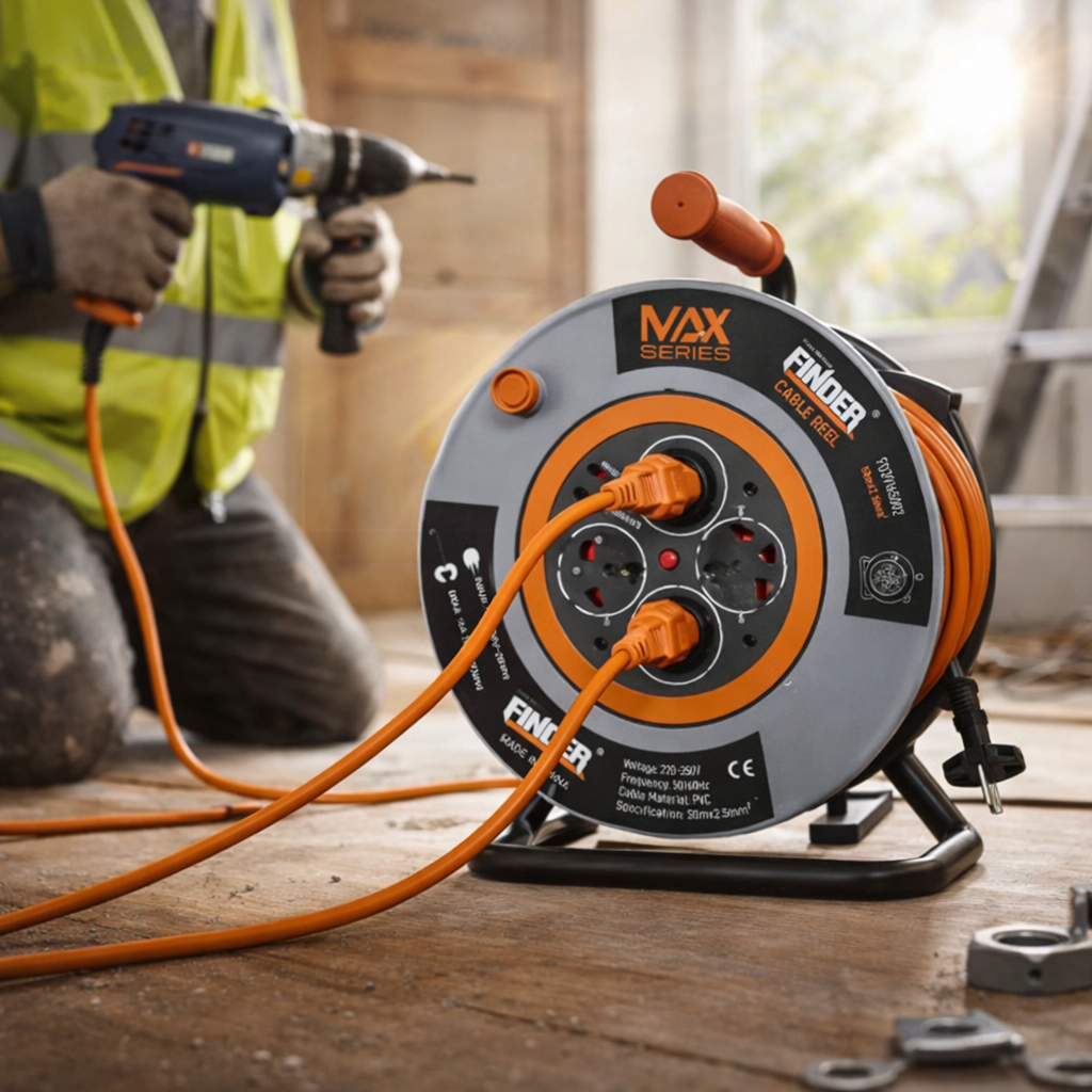 بكرة تمديد كهرباء من Finder – سلسلة NAX عالية الجودة، مصممة لتوفير أداء موثوق وآمن للاستخدام المنزلي أو المهني.