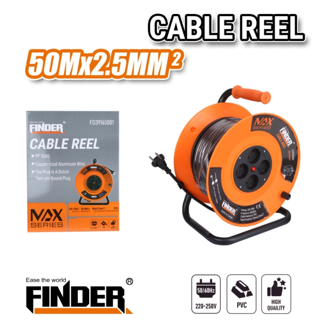 بكرة تمديد كهرباء من Finder – سلسلة NAX، مصممة لتوفير أداء قوي وآمن للاستخدام المنزلي والمهني.