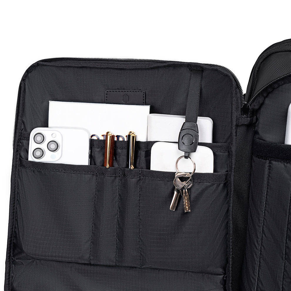 الحقيبة مصنوعة من قماش أوكسفورد عالي الكثافة بطبقة متينة مقاومة للماء والخدش والتآكل، لتوفر حماية ممتازة لمقتنياتك وتدوم لسنوات طويلة. كما أنها تحتوي على جيوب متعددة وتنظيم داخلي ممتاز، مع قسم خاص للابتوب حتى 15.6 بوصة.