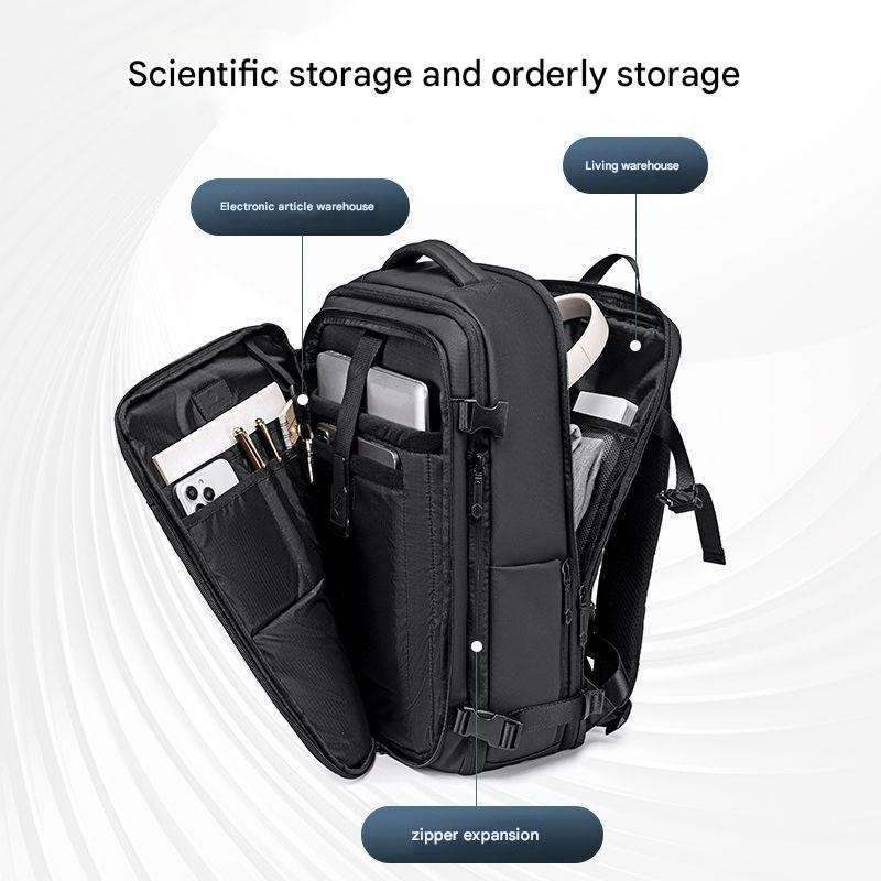 حقيبة الظهر من Arctic Hunter موديل B00866 صُممت خصيصاً للسفر والعمل والدراسة بفضل حجمها الكبير وتقنية ضغط الهواء (Vacuum Compression) مع مضخة مجانية مرفقة. بفضل هذه الميزة، يمكنك زيادة سعة الحقيبة من 36 لتر إلى ما يعادل 55 لتر، مما يجعلها مثالية للرحلات الطويلة.