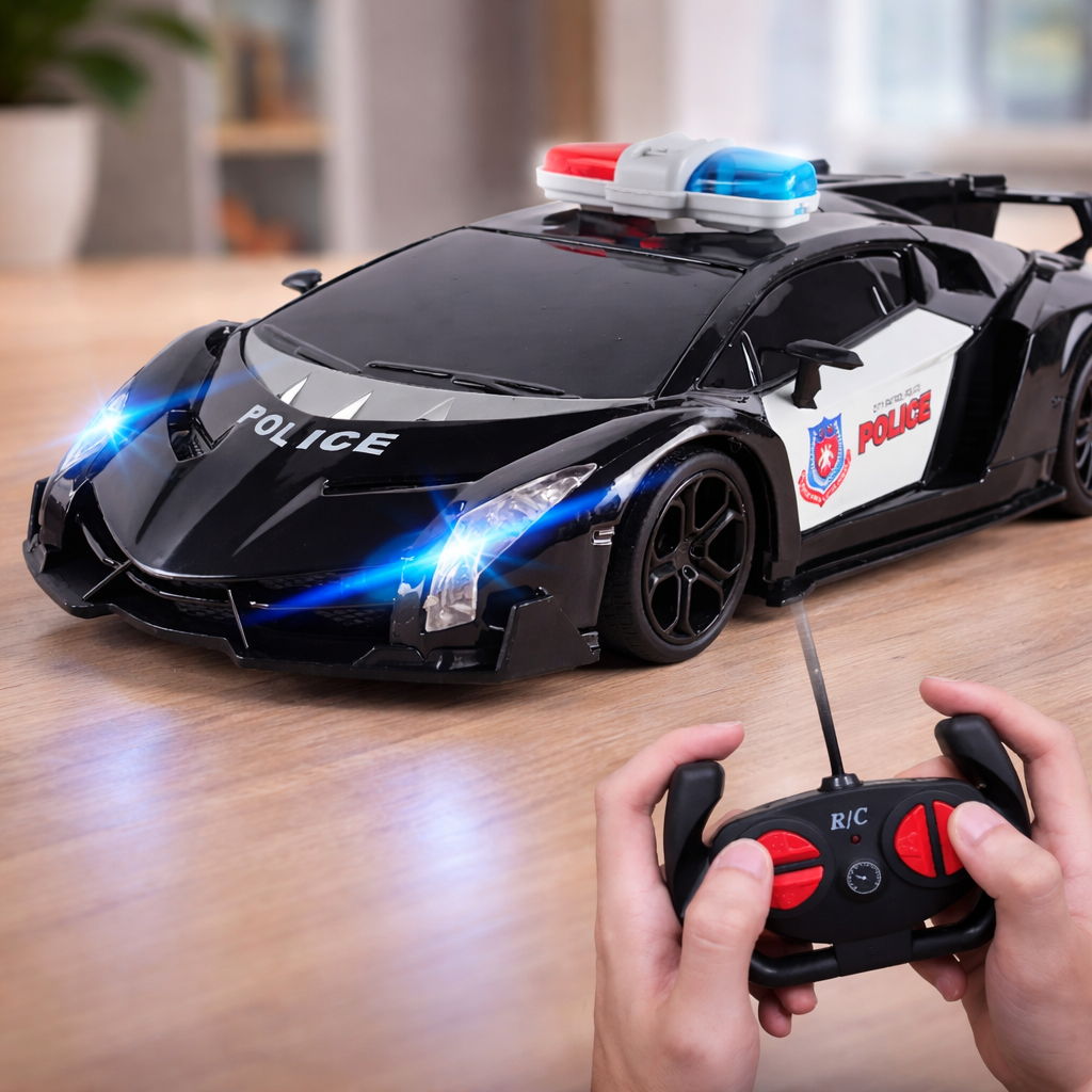 استعد لأجواء المطاردة والحماس مع سيارة الشرطة الفاخرة بمقياس 1:12، من إنتاج شركة JUNYUAN. تتميز هذه السيارة بتصميمها الرياضي العصري والمستوحى من سيارات الشرطة الفعلية، مع تفاصيل دقيقة ومظهر أنيق يجذب أنظار الأطفال ومحبي السيارات.