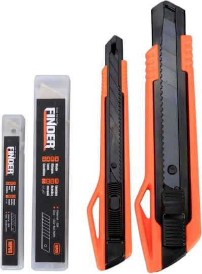 طقم من قطعتين من سلسلة Finder Max Series (مشرط 9 مم + مشرط 18 مم). يتميز بشفرات فولاذية وتصميم مريح مع قفل أمان للاستخدام الآمن أثناء القص.