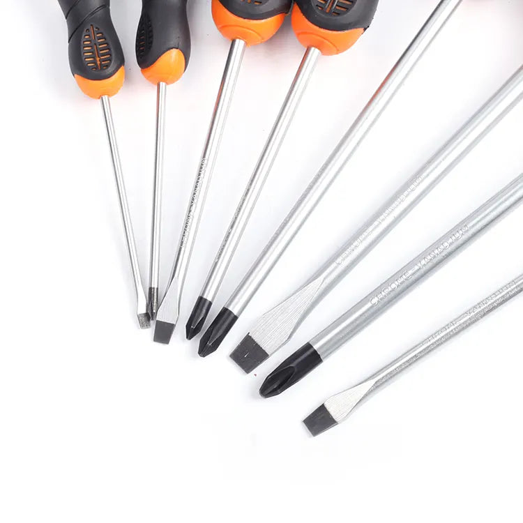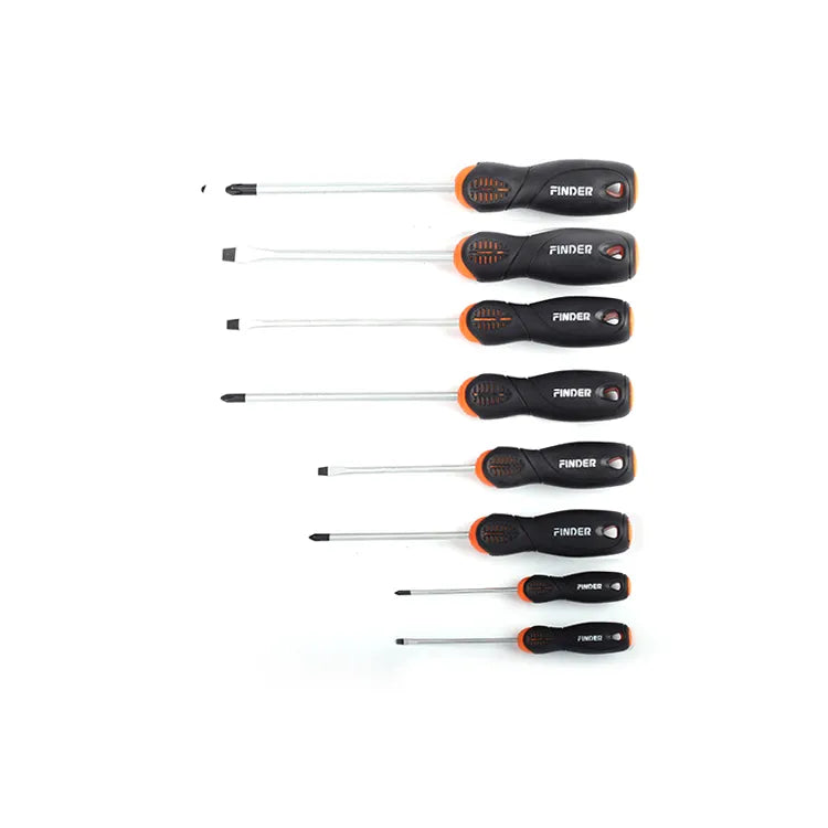 احصل على طقم مفكات عالي الجودة مكوّن من 8 قطع، مثالي للاستخدام المنزلي والمهني. مصنوع من فولاذ 6150CRV القوي بصلابة 55–50HRC لضمان المتانة ومقاومة التآكل، مع طبقة نيكل مطلي للحماية من الصدأ.