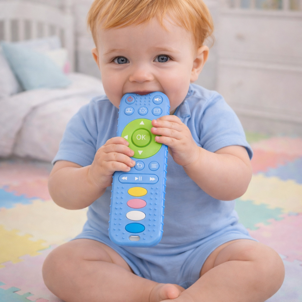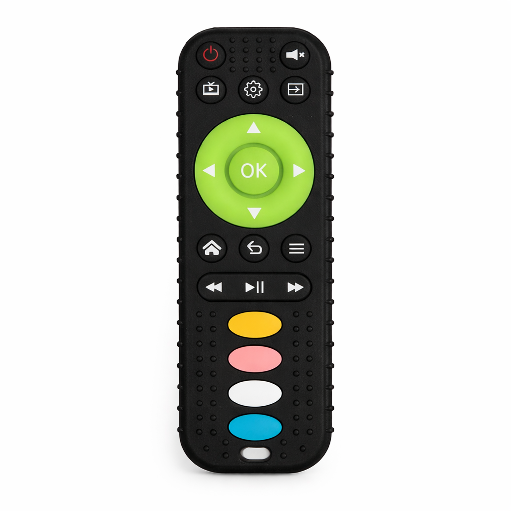 عضّاضة أطفال مصممة بشكل جذاب يشبه الريموت، تساعد الطفل على التسلية وتخفيف آلام التسنين بطريقة آمنة وممتعة. مصنوعة من الربر الناعم والمرن المناسب للّثة الحساسة، وسهلة الإمساك بفضل تصميمها الخفيف والمريح ليد الطفل.