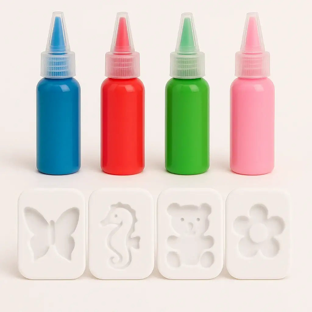 تتضمن المجموعة زجاجات جل لعب مستوحى من الحياة البحرية بألوان مختلفة وقوالب تصميم قابلة لإعادة الاستخدام