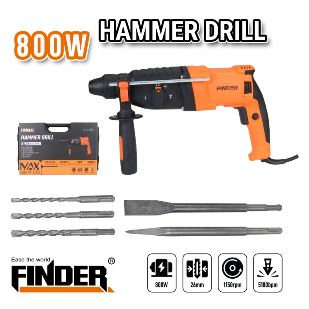 هامر درل كهربائي قوي من سلسلة MAX Series من Finder، مصمم للإنشاءات والأعمال الاحترافية والمنزلية. يوفر أداءً عاليًا في الحفر والتكسير بفضل محركه القوي وقدرته على التعامل مع مختلف المواد.