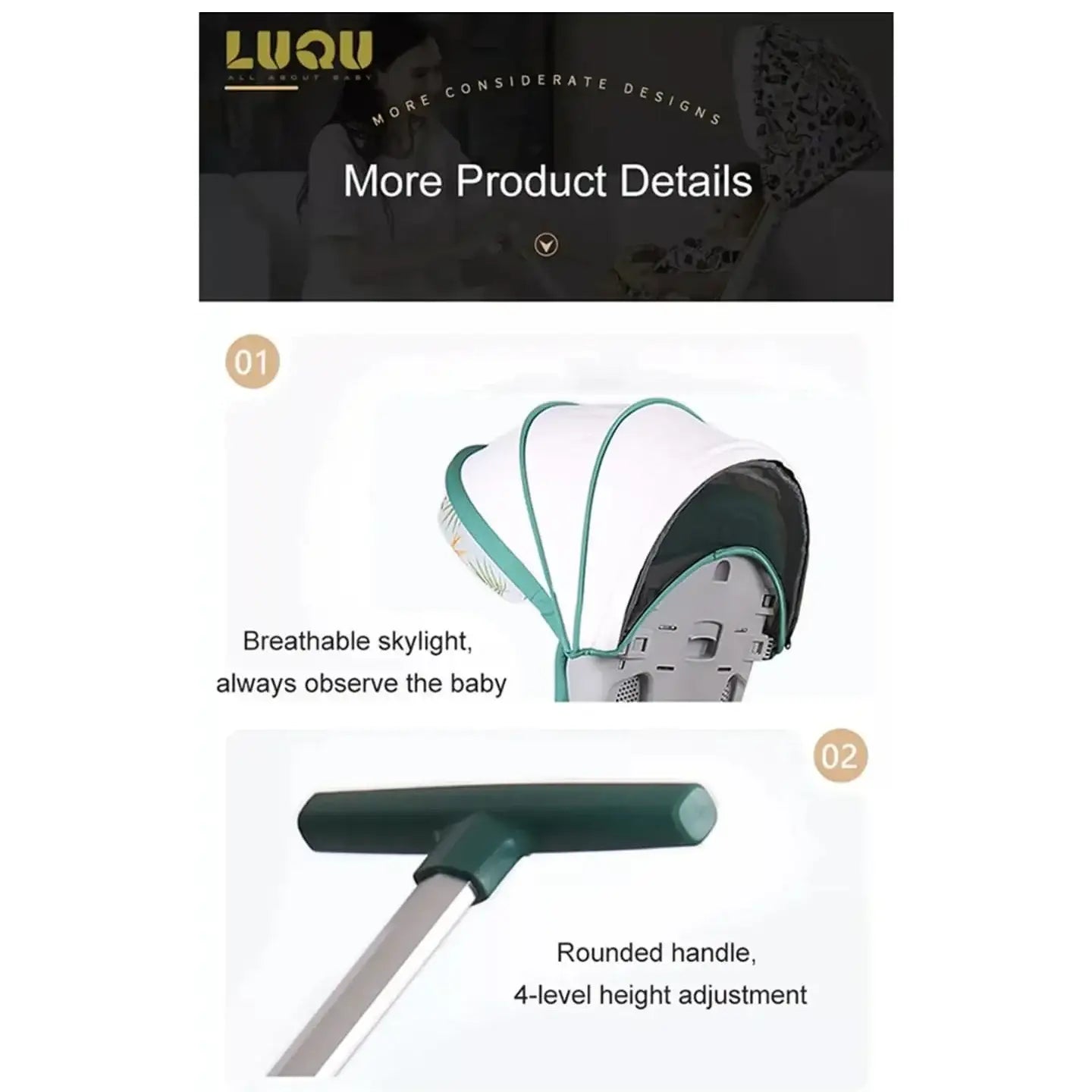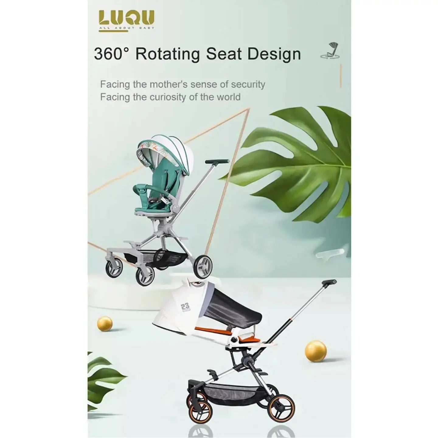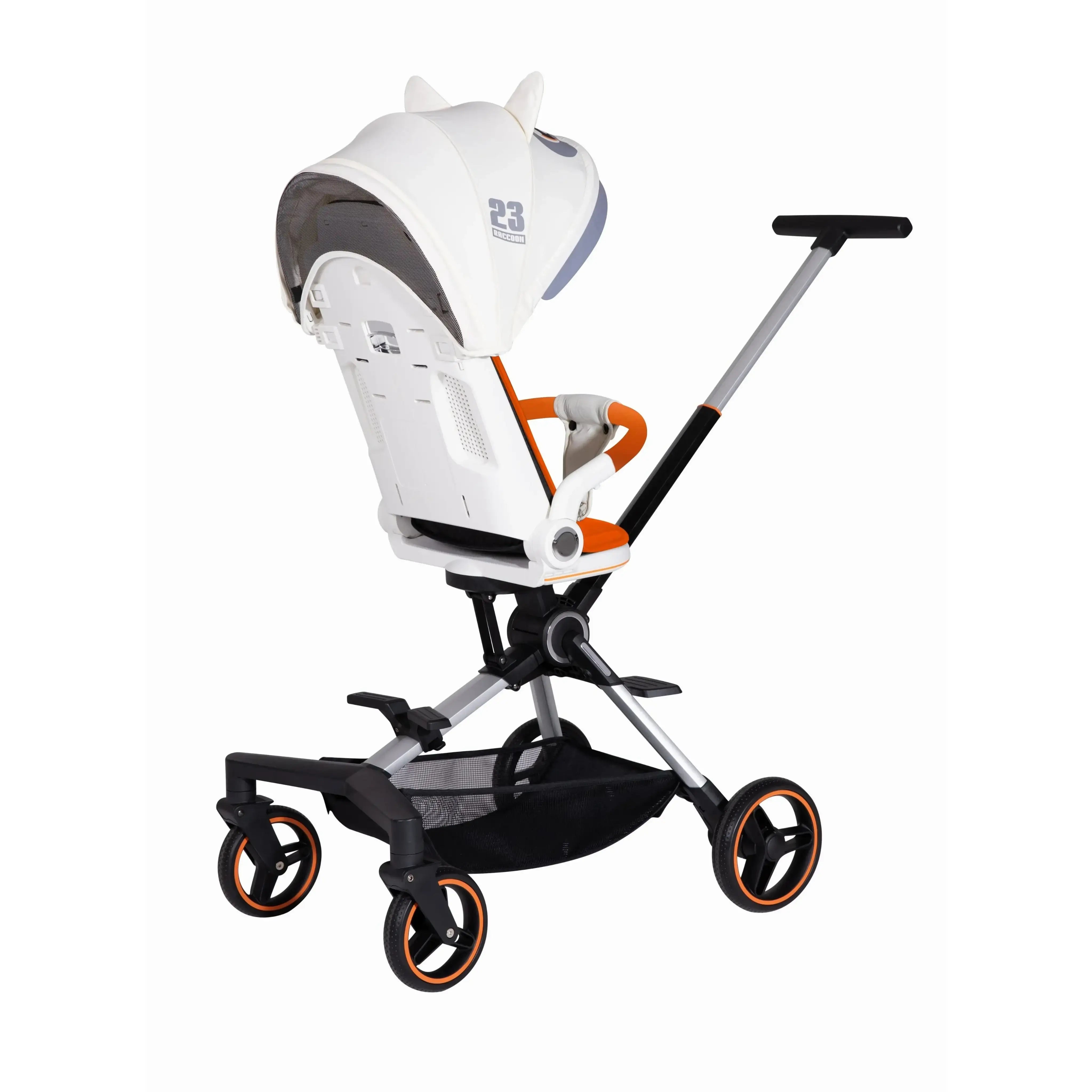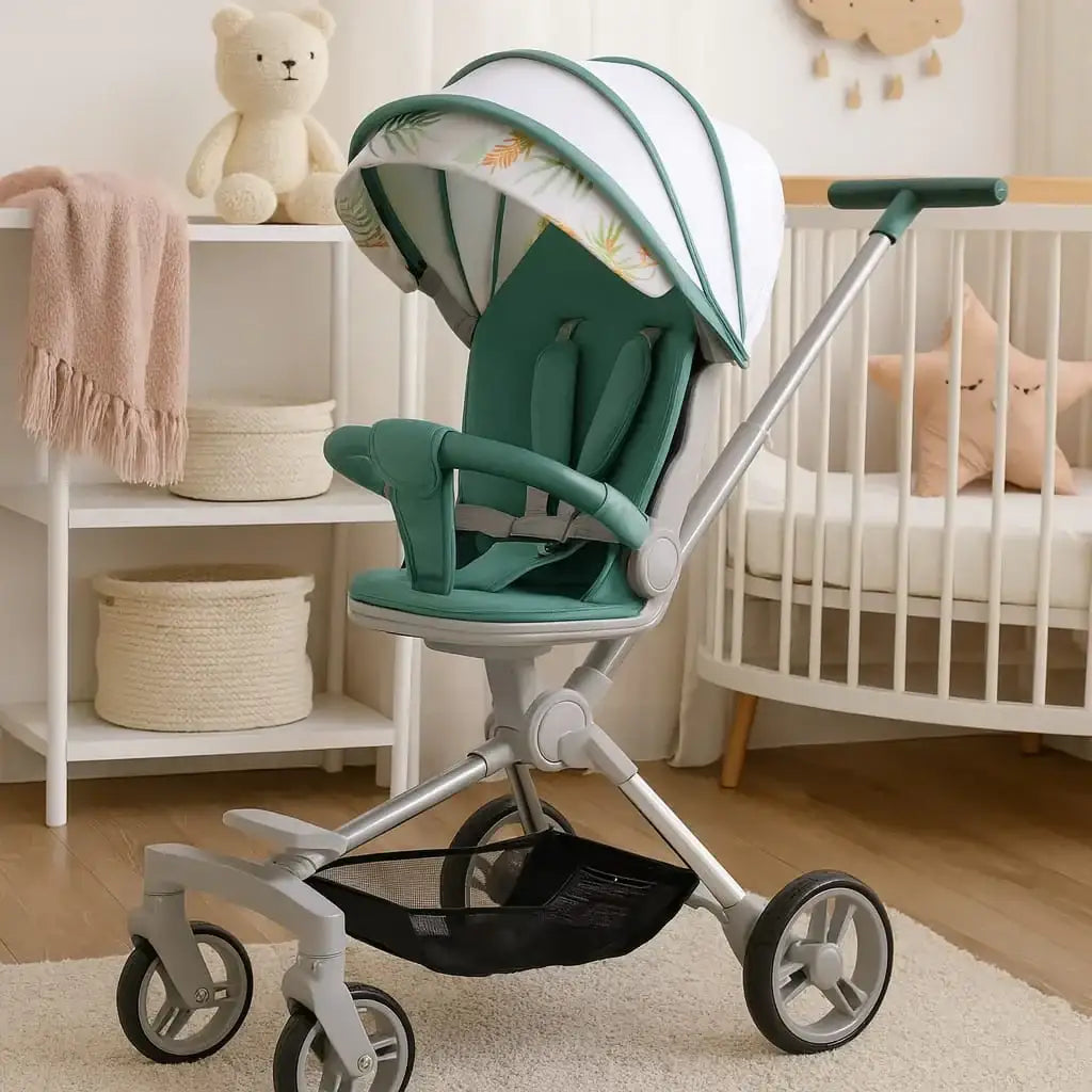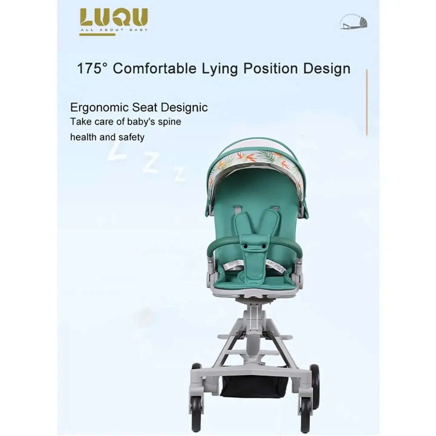 أوضاع جلوس متعددة: حزام أمان من 5 نقاط و3 أوضاع للإمالة وعجلات أمامية مضادة للصدمات وعجلات خلفية قابلة للقفل، مما يوفر المزيد من الراحة، خاصة عندما ينام الطفل