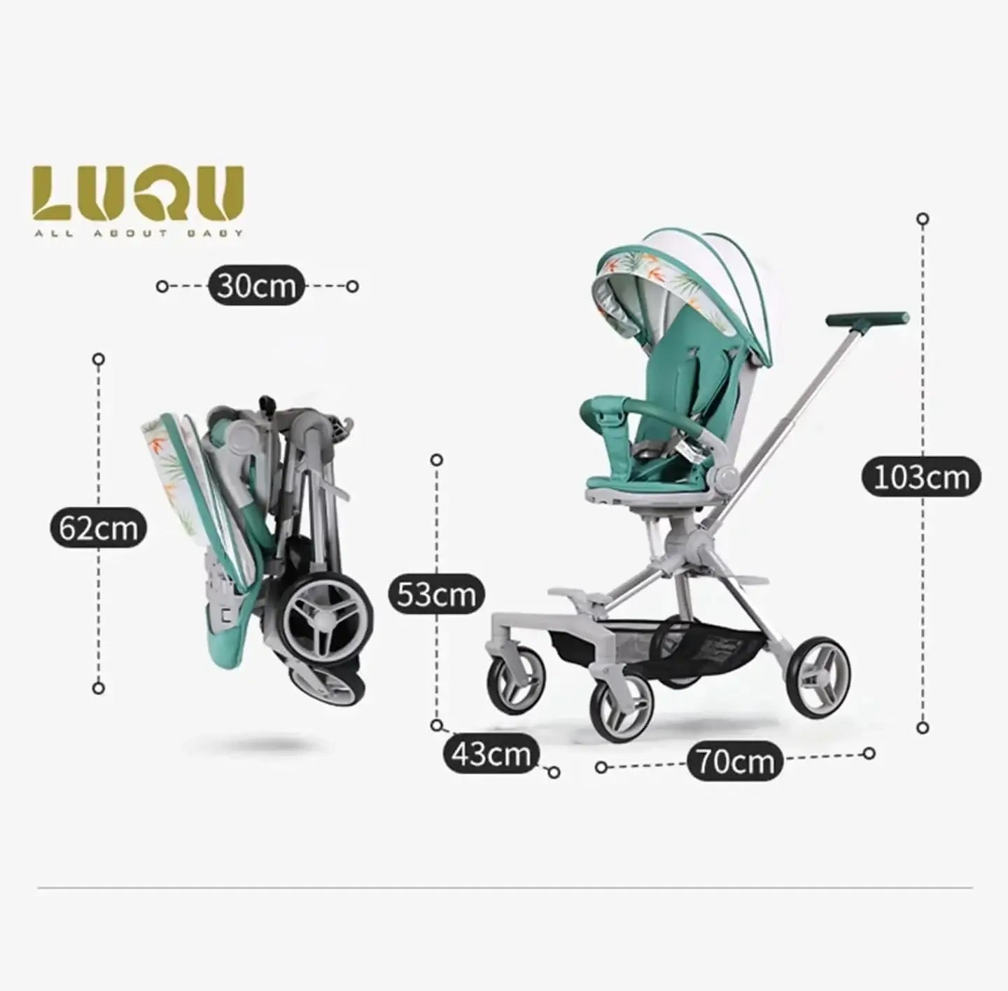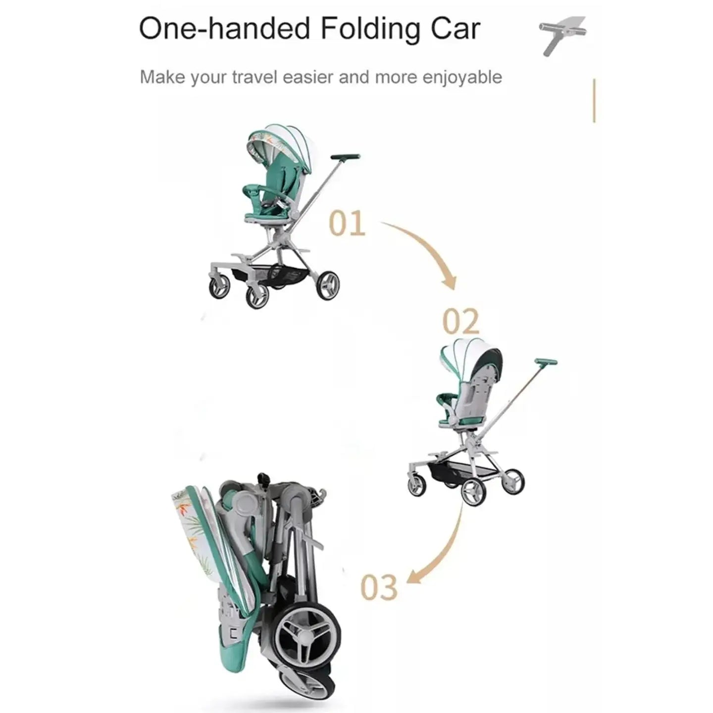 قابلة للطي بيد واحدة: إنها عربة خفيفة الوزن، بمادة قوية، وصغيرة الحجم عند طيها، وسهلة التعبئة ووضعها في السيارة. إنها عربة الأطفال المفضلة لك للمشي والتسوق